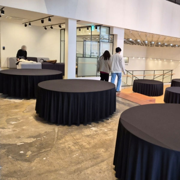 연회용 원형 테이블 보와 함께 사용됩니다.